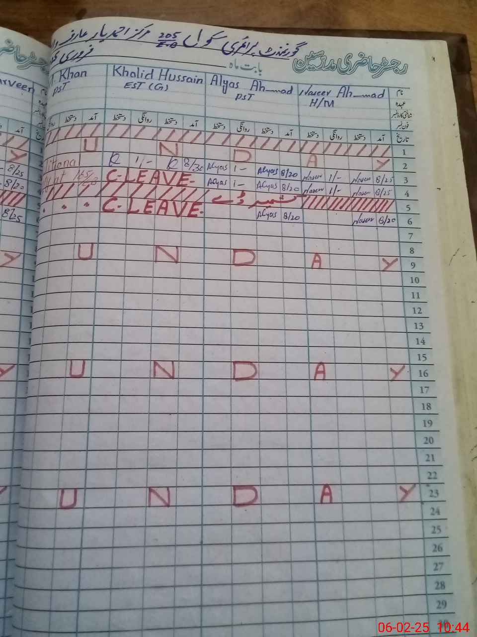 | CNIC | Full Name | Designation | R/C | Absence During Last Calender Month |