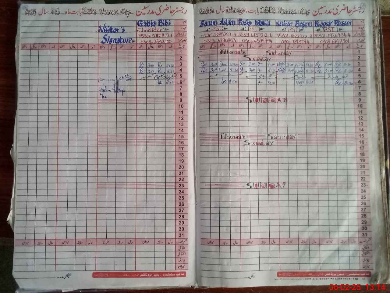 | Total no. of Classrooms: 2 No. of Classrooms Used for Teaching: 2 No. of Classrooms Storing Old Furniture, FTBs, etc: 0Comments if Any: Nominal roll for online attendance found contrary to current students records All enrolled students provided with free taxtbooks accordingly |