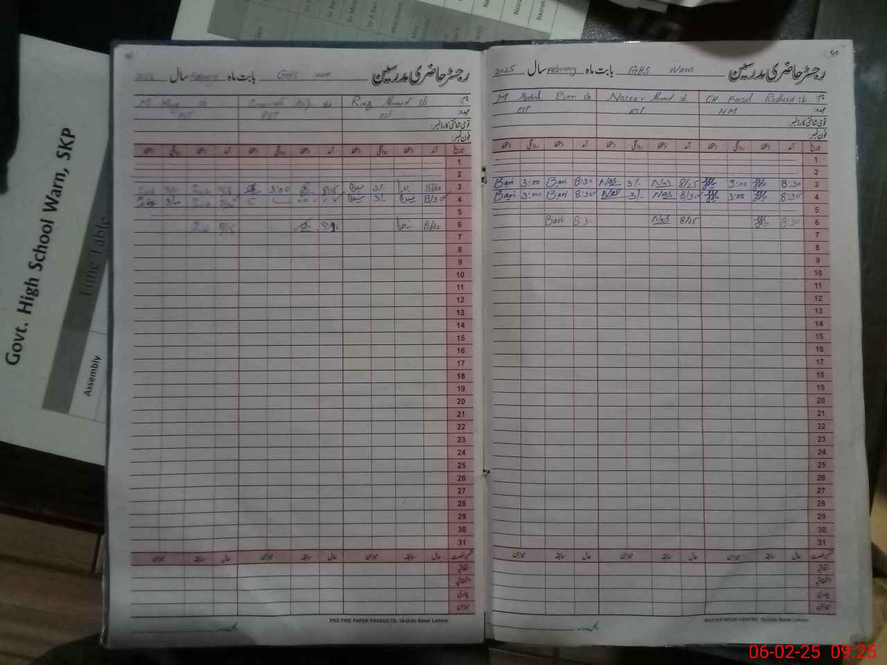 | CNIC | Full Name | Designation | R/C | Absence During Last Calender Month |