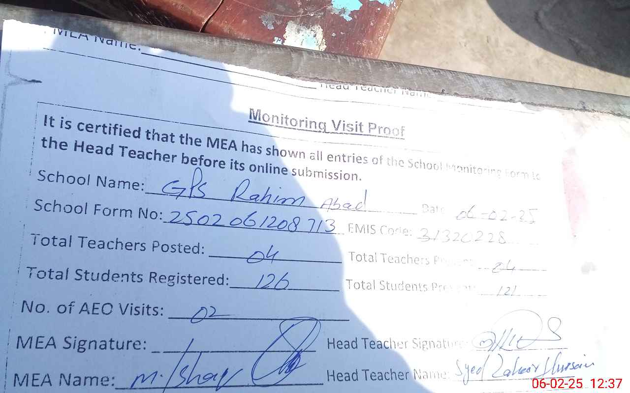 | EMIS Code: 31320228 | Name of School: GPS RAHIM ABAD | |||