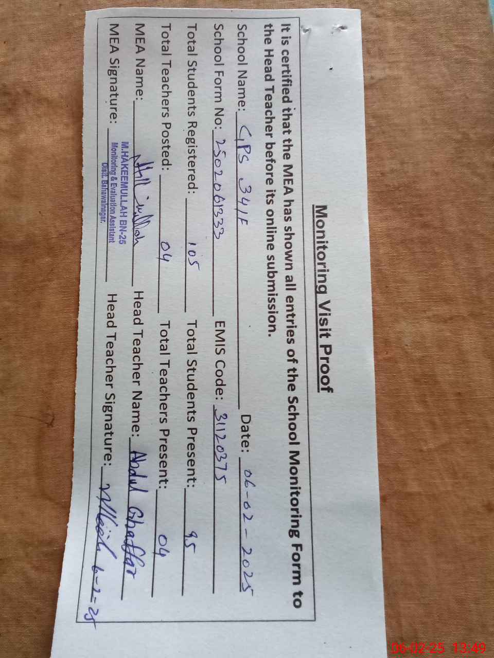 | EMIS Code: 31120375 | Name of School: GPS CHAK NO 34/F | |||