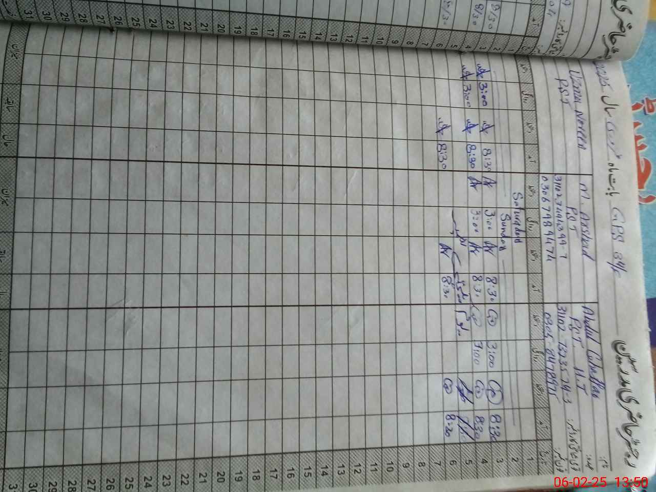 | CNIC | Full Name | Designation | R/C | Absence During Last Calender Month |