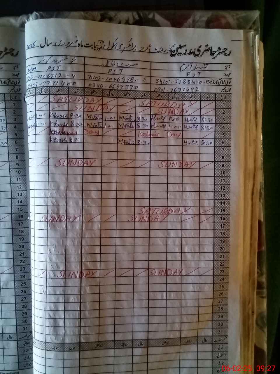 | CNIC | Full Name | Designation | R/C | Absence During Last Calender Month |