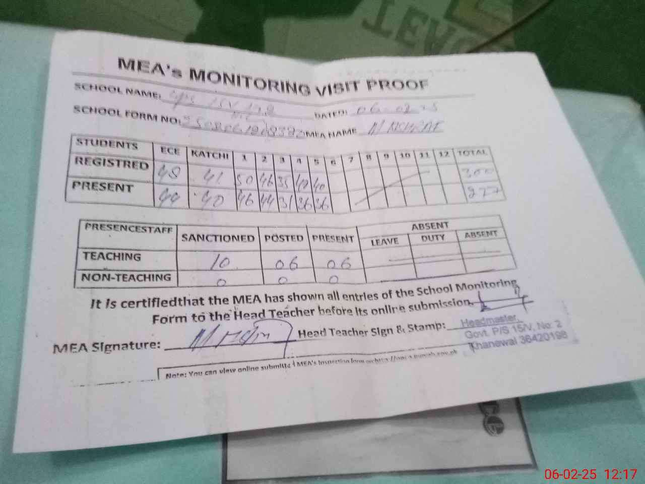 | EMIS Code: 36420198 | Name of School: GPS 15/V NO.2 KHANEWAL | |||