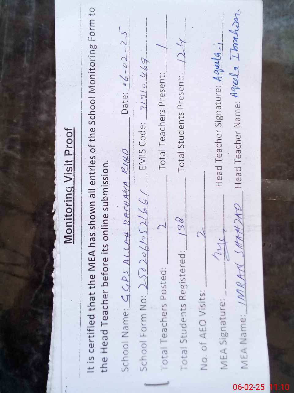| EMIS Code: 31310469 | Name of School: GGPS ALLA BACHAYA RIND | |||