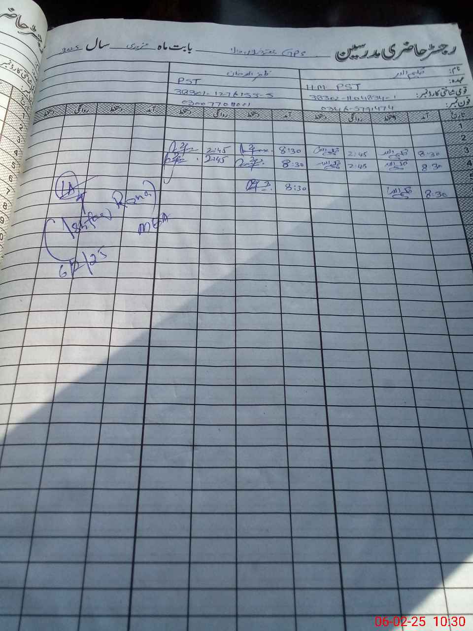 | CNIC | Full Name | Designation | R/C | Absence during last cal. month |