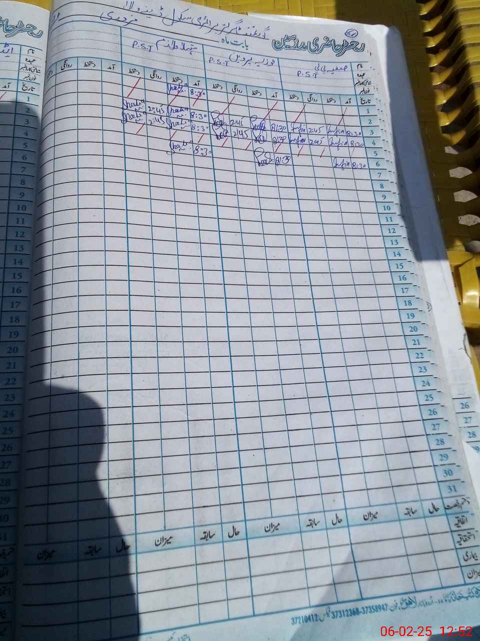 | CNIC | Full Name | Designation | R/C | Absence during last cal. month |