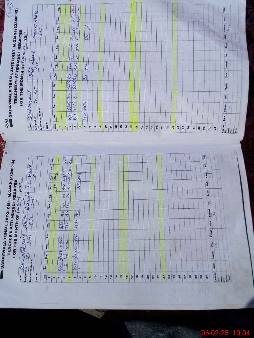 | Name: IR**** UL**** TA**** Designation: (School Headmaster's/Headmistress's) S.S.T.(GEN) Phone/Cell Number: 03**** |