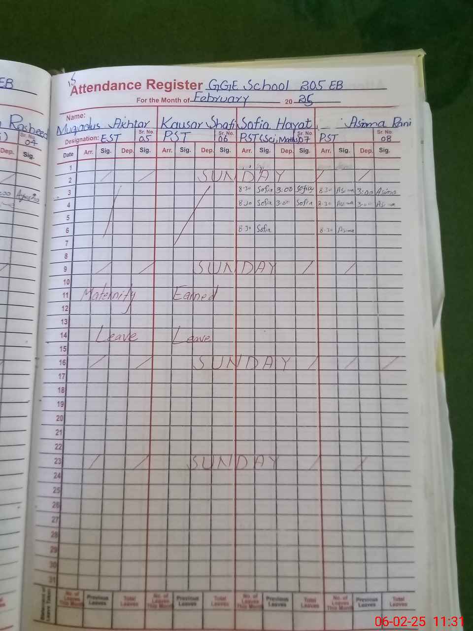 | 36**** | Mu**** Ak**** | Regular | 17 | 0 | 0 | 15 | 0 | 0 | 0 | 0 | 2 | Maternity | |