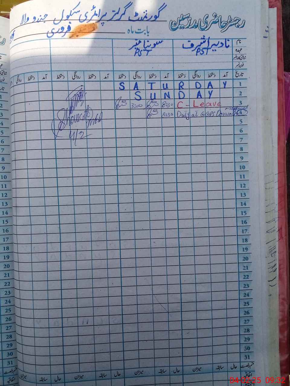 | Name: NA**** AS**** Designation: (School Headmaster's/Headmistress's) PST Phone/Cell Number: 03**** |