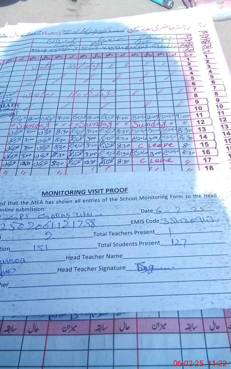 | EMIS Code: 35430943 | Name of School: GGPS GORAY WALA | |||