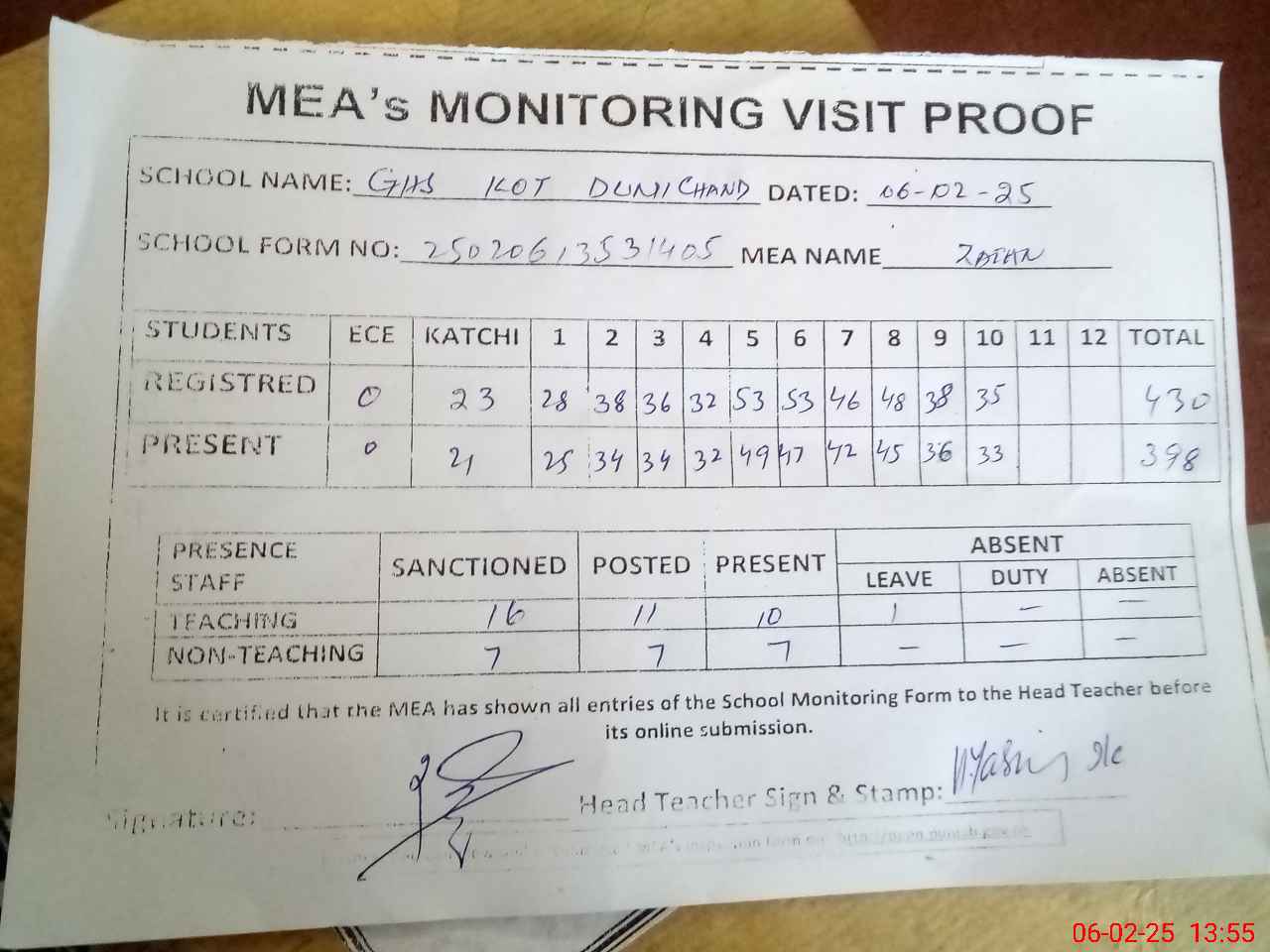 | EMIS Code: 36410024 | Name of School: GHS KOT DUNI CHAND, ABDUL HAKIM | |||