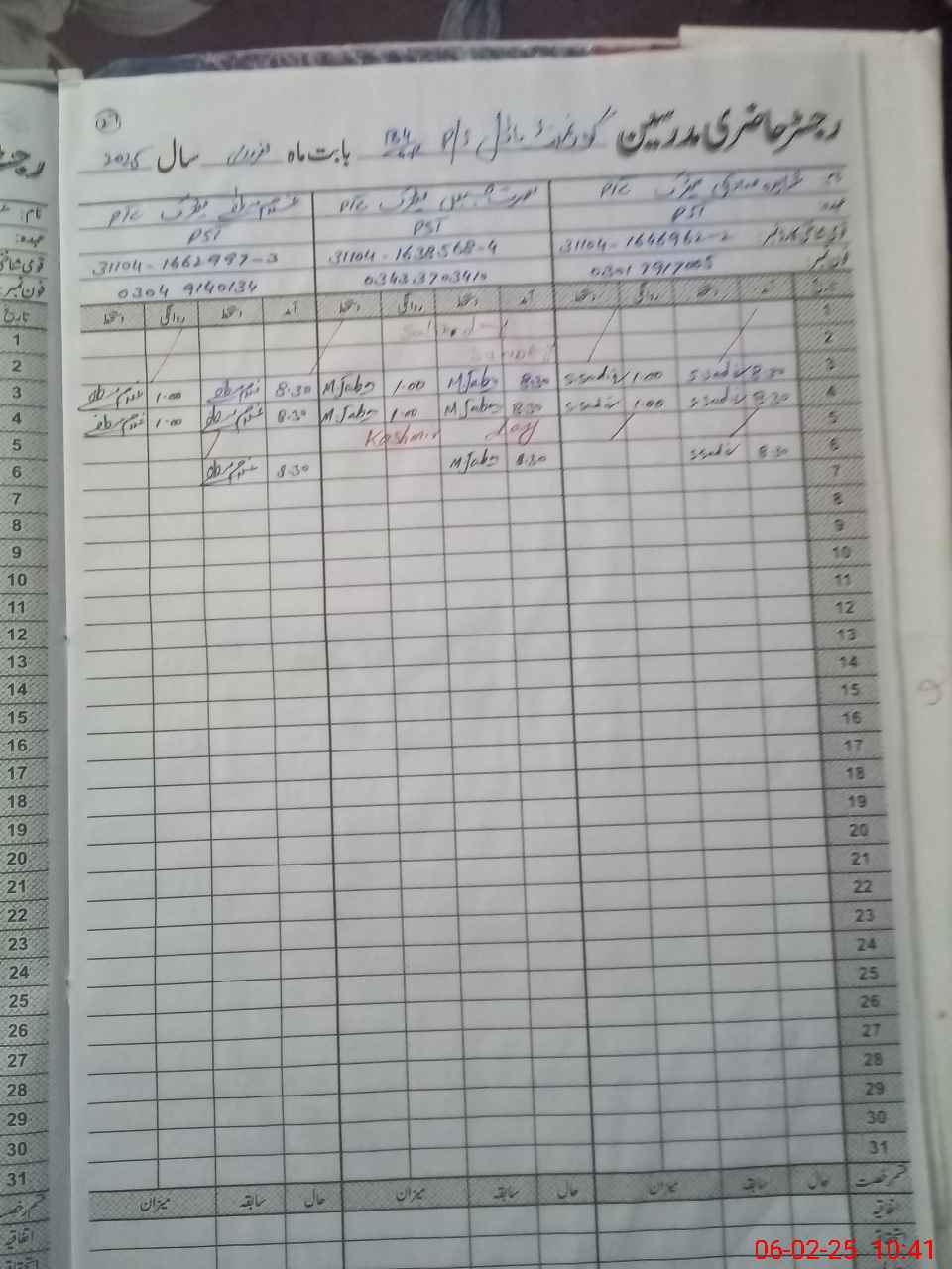 | CNIC | Full Name | Designation | R/C | Absence During Last Calender Month |