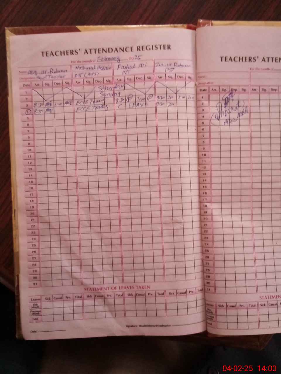 | Leave | Duty | Absent | Maternity | Medical | Ex- Pak |
