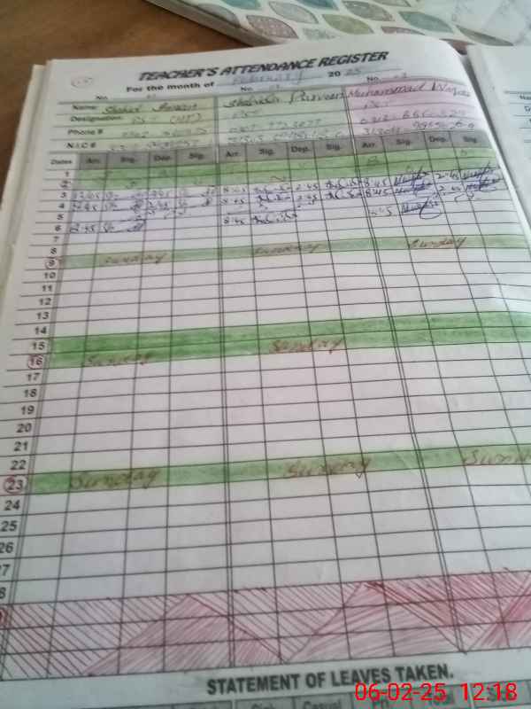 | Name: Sh**** Im**** Designation: (School Headmaster's/Headmistress's) PST Phone/Cell Number: 03**** |