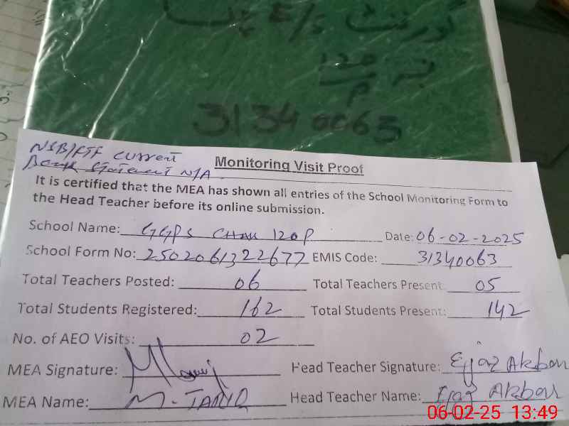 | EMIS Code: 31340063 | Name of School: GES CHAK 120/P | |||