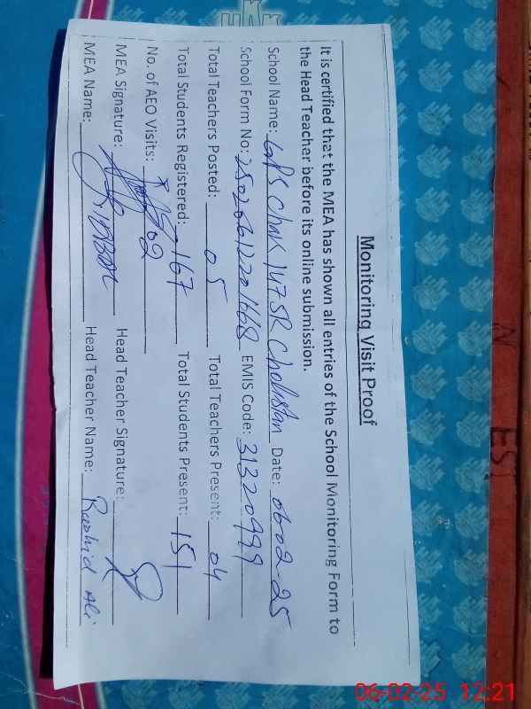 | EMIS Code: 31320999 | Name of School: GPS CHAK NO.147/5-R CHOLISTAN | |||