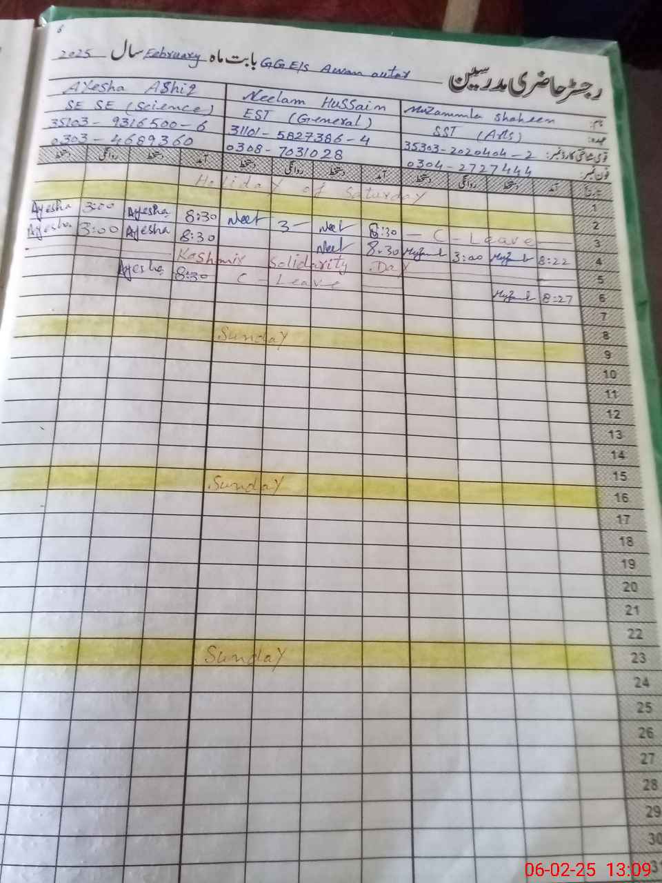 | Name: Mu**** Sh**** Designation: (School Headmaster's/Headmistress's) SST Phone/Cell Number: 03**** |