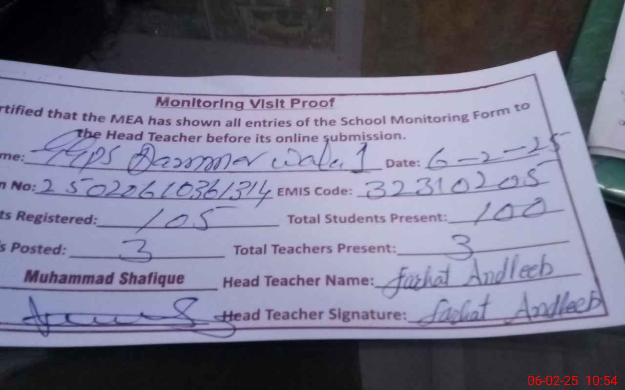 | EMIS Code: 32310205 | Name of School: GGPS DAMMER WALA JANUBI NO. 1 | |||