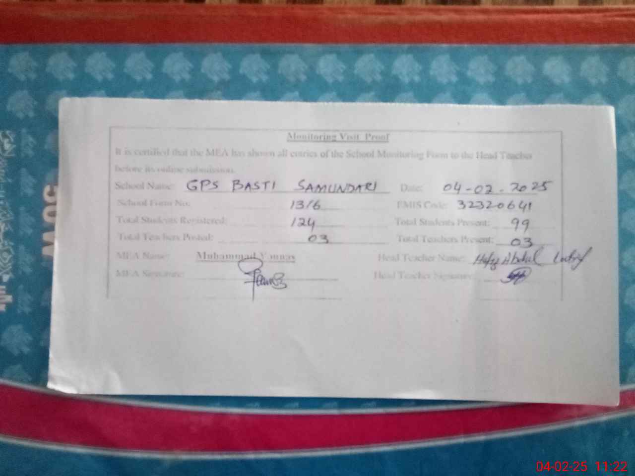 | EMIS Code: 32320641 | Name of School: GPS BASTI SAMUNDRI | |||