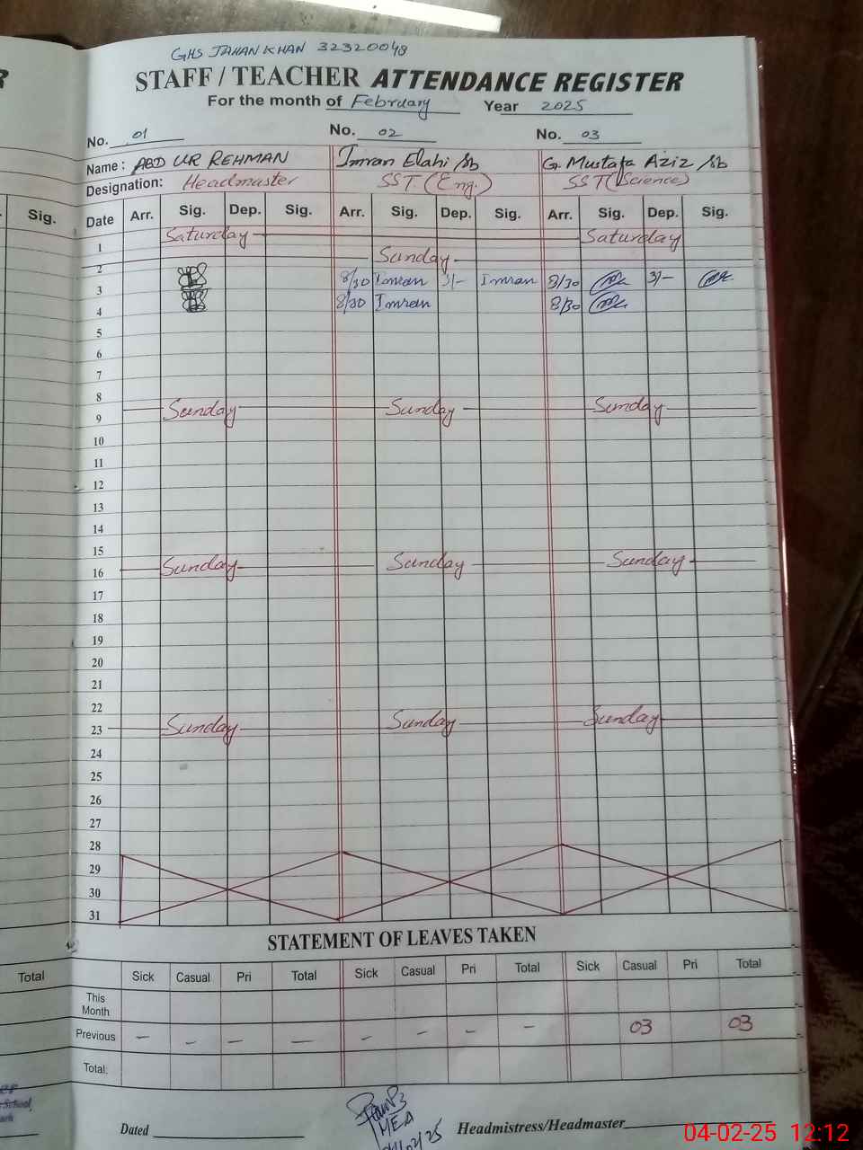 | EMIS Code: 32320048 | Name of School: GHS JAHAN KHAN | |||