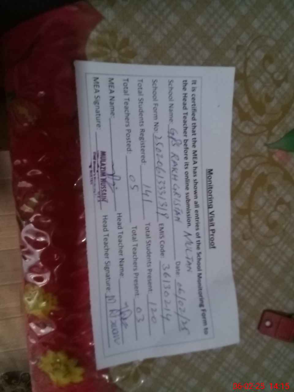 | EMIS Code: 36130214 | Name of School: GPS RAKH GRISTAN ABAD MAKHDUM RASHEED MULTAN | |||