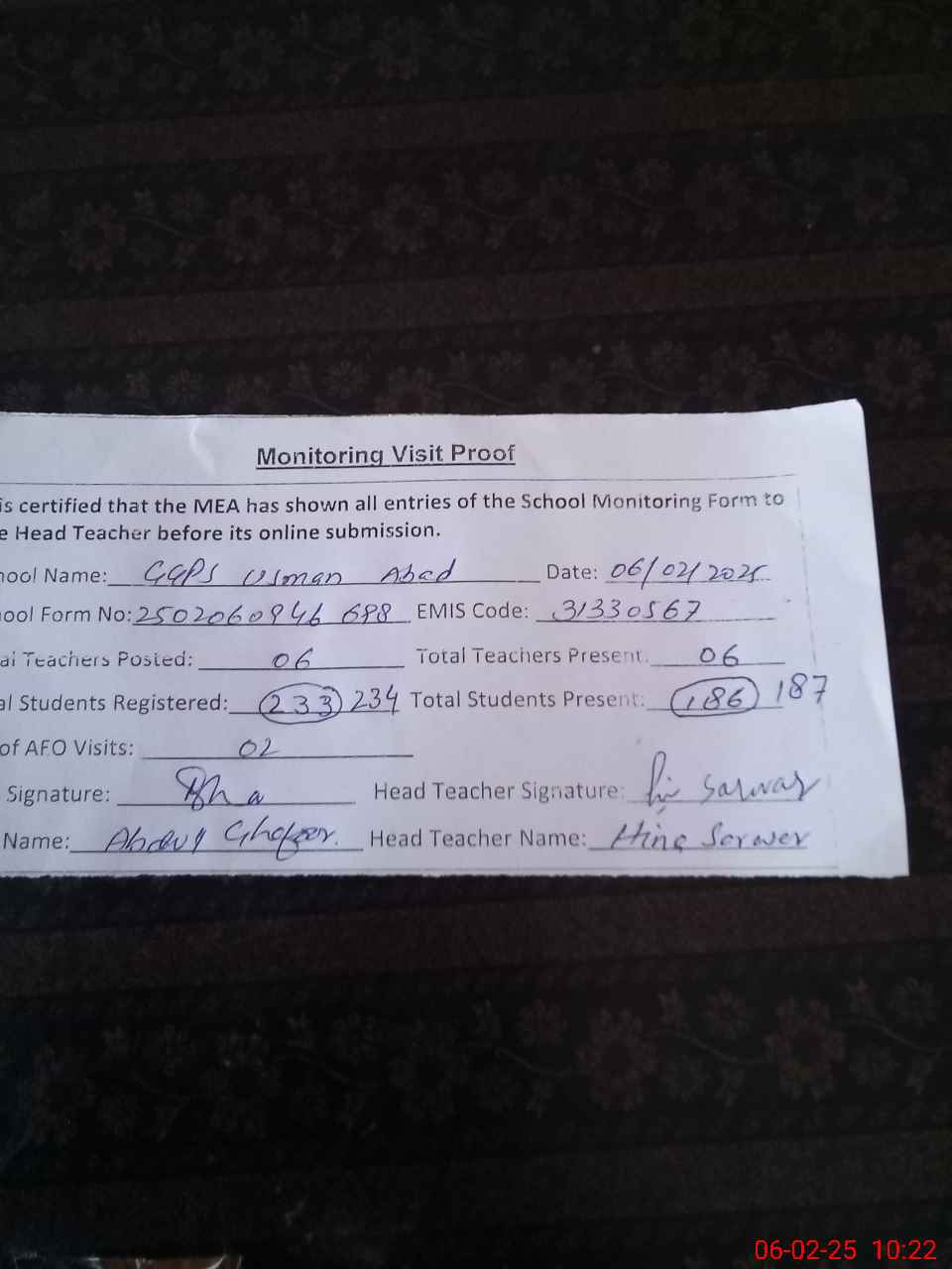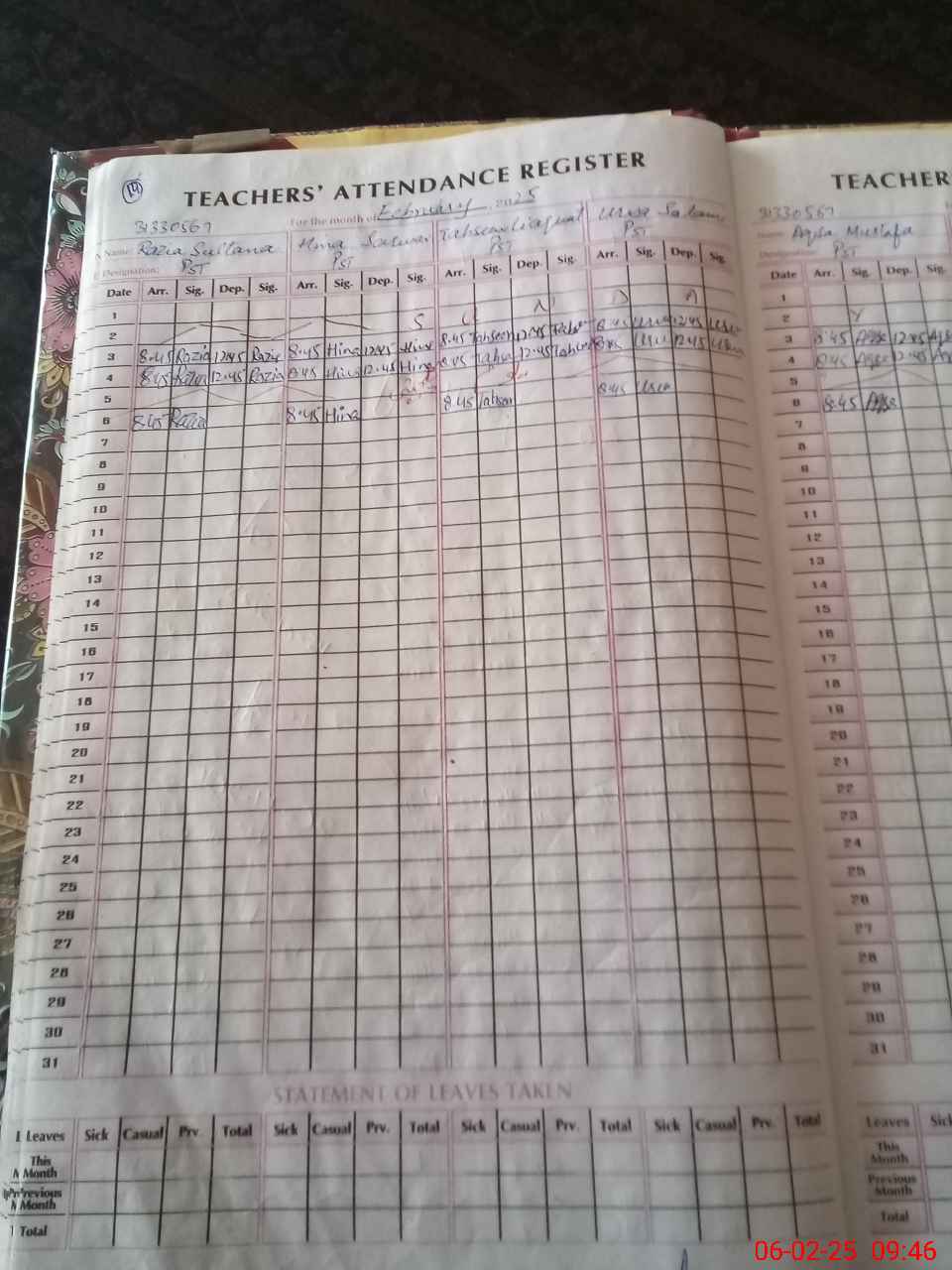 | Name: Hi**** Sa**** Designation: (School Headmaster's/Headmistress's) PST Phone/Cell Number: 03**** |