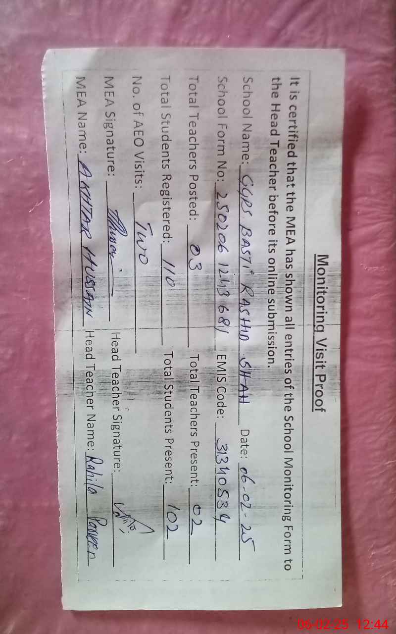 | EMIS Code: 31340534 | Name of School: GGPS BASTI RASHID SHAH | |||