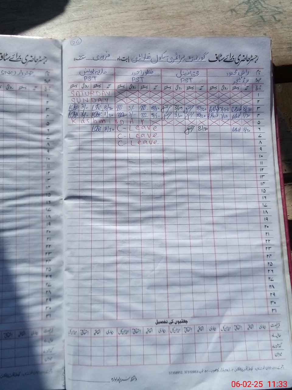 | CNIC | Full Name | Designation | R/C | Absence During Last Calender Month |