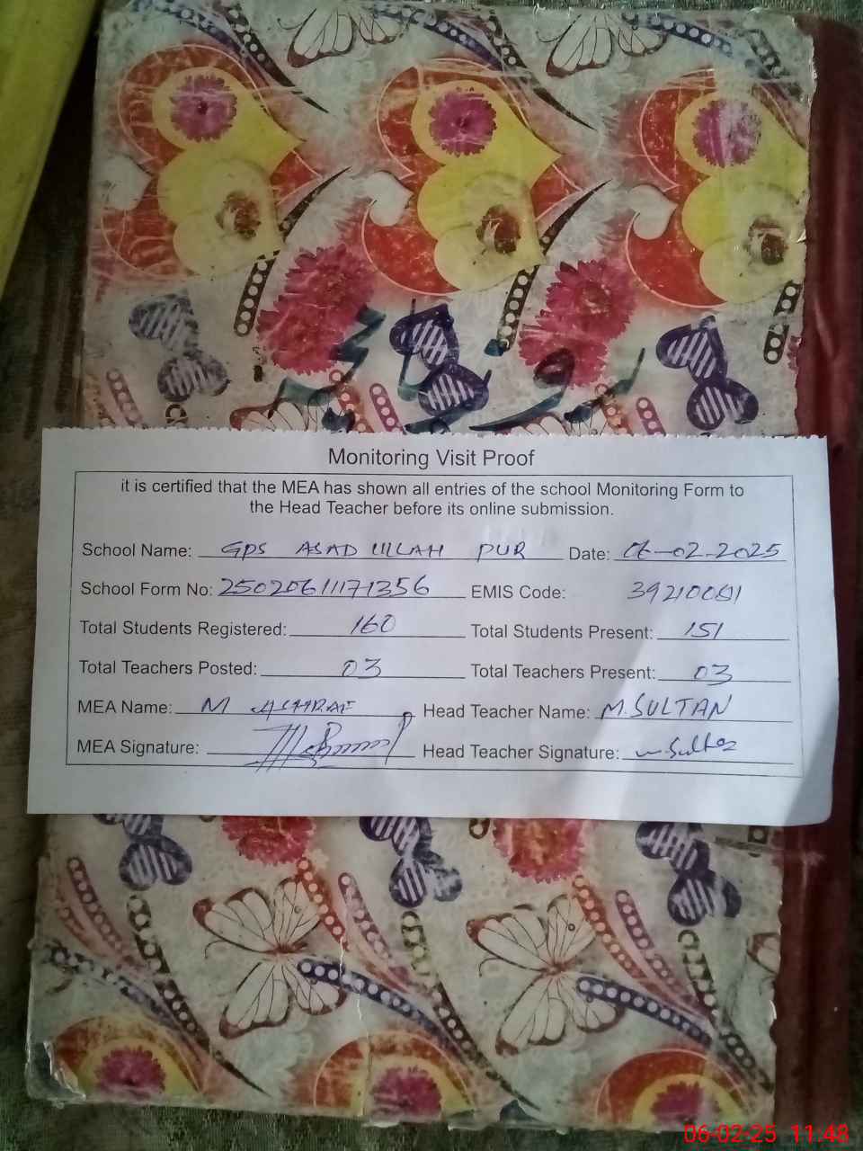 | EMIS Code: 39210081 | Name of School: GPS ASADULLAH PUR | |||