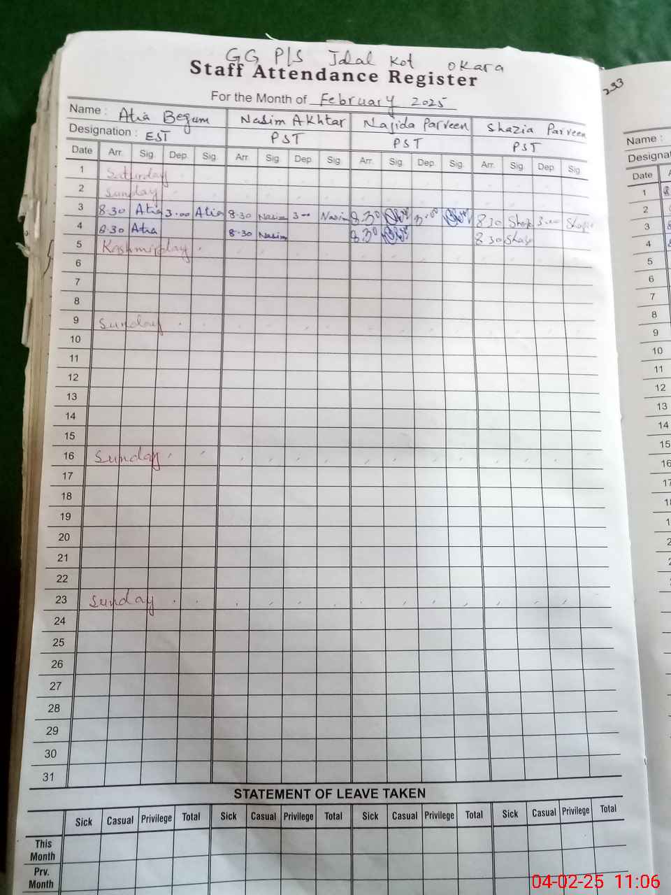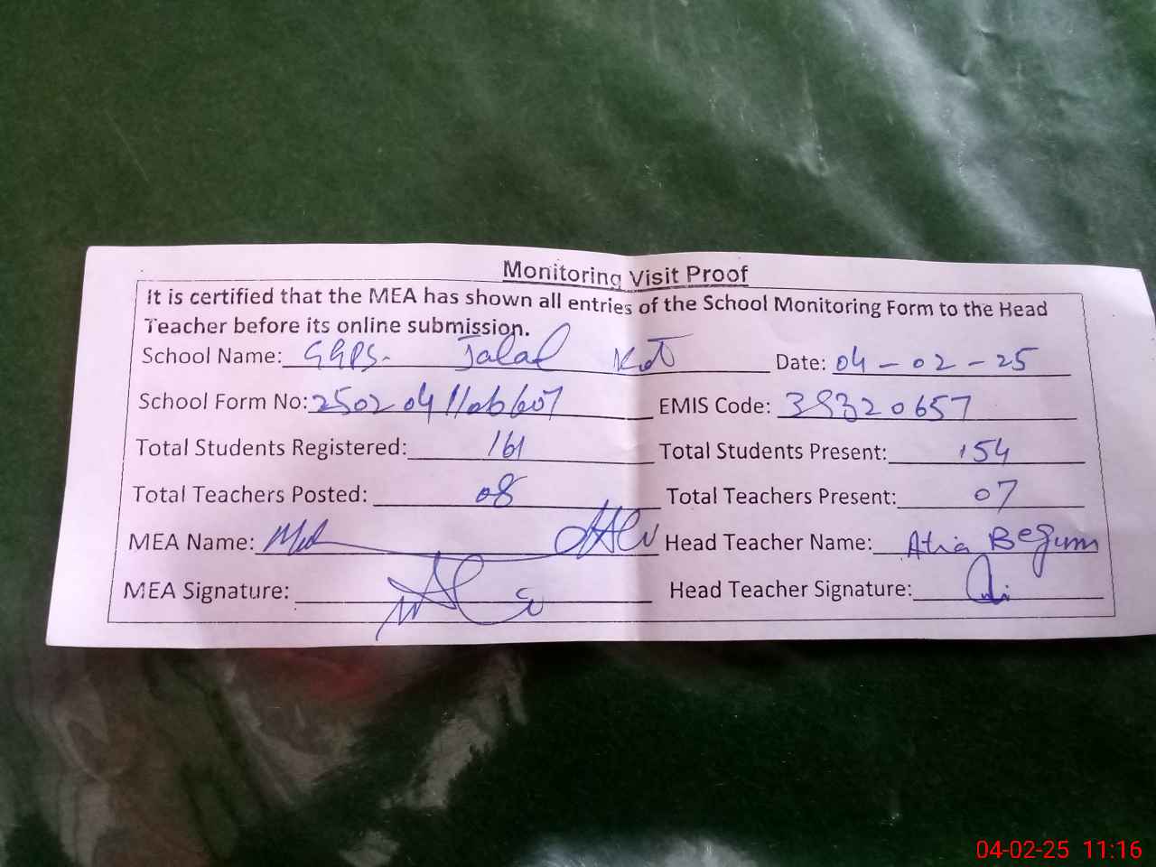 | EMIS Code: 39320657 | Name of School: GGPS JALAL KOT OKARA | |||