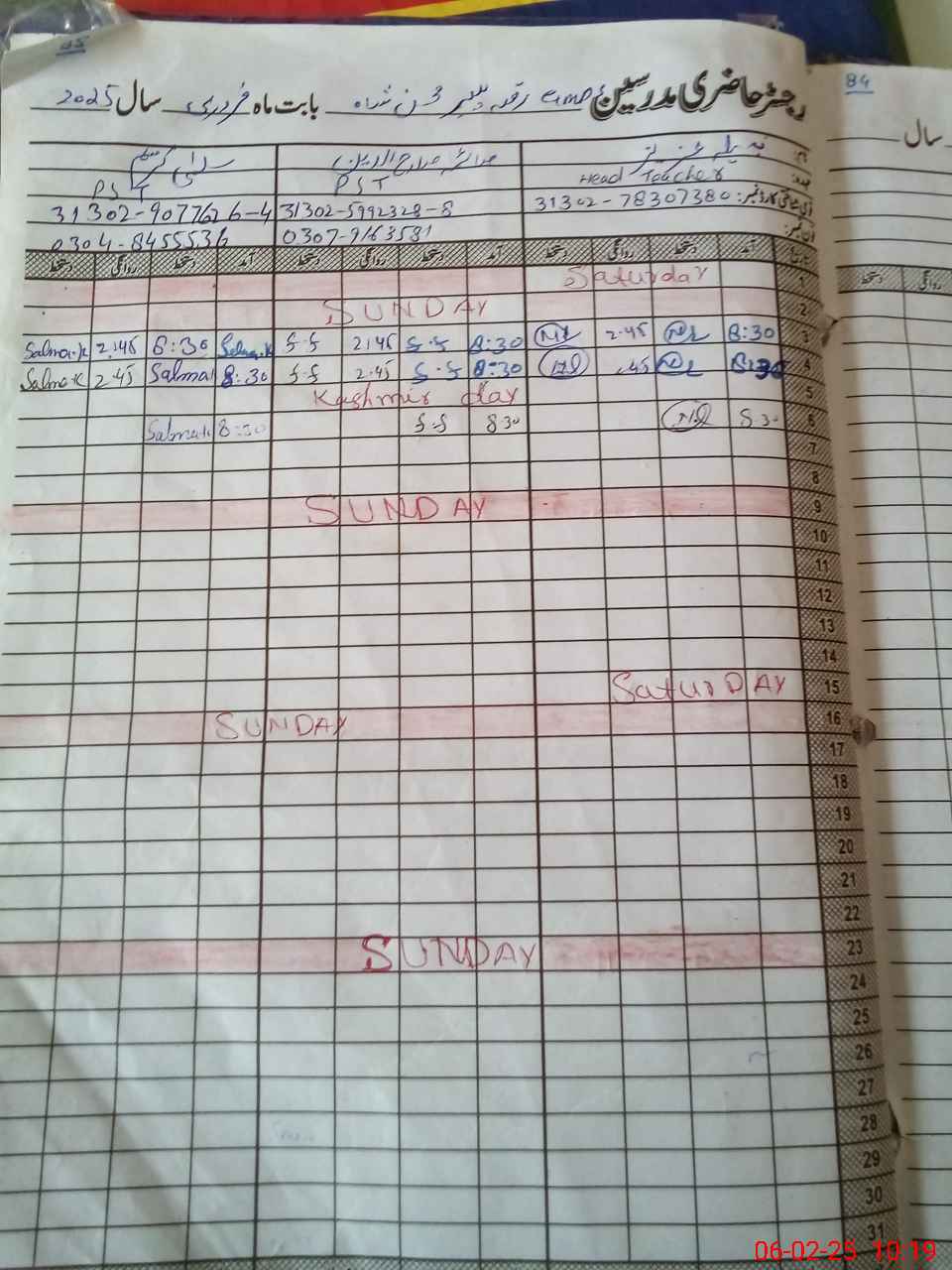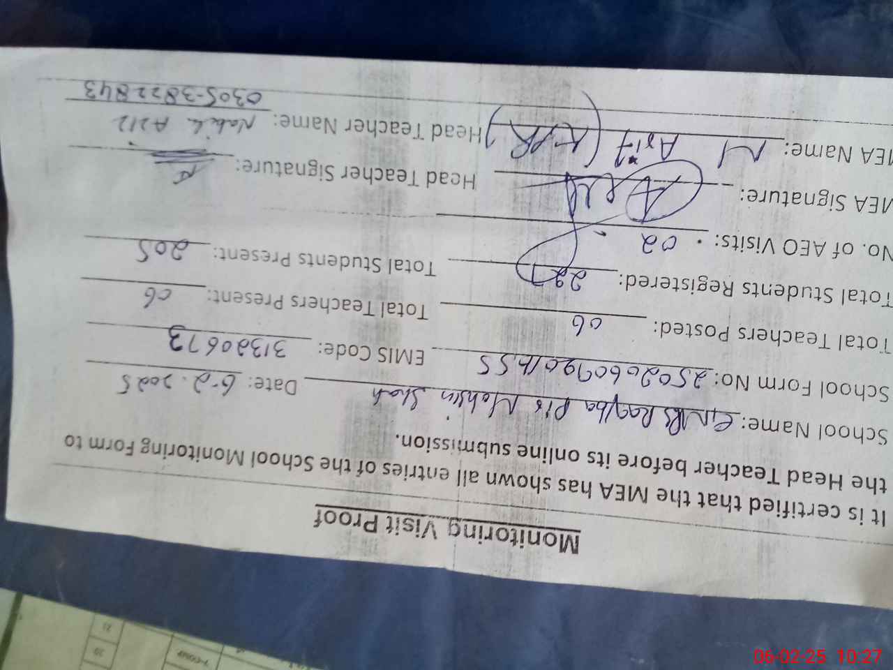 | Name: NA**** AZ**** Designation: (School Headmaster's/Headmistress's) PST/PTC/JV Phone/Cell Number: 03**** |