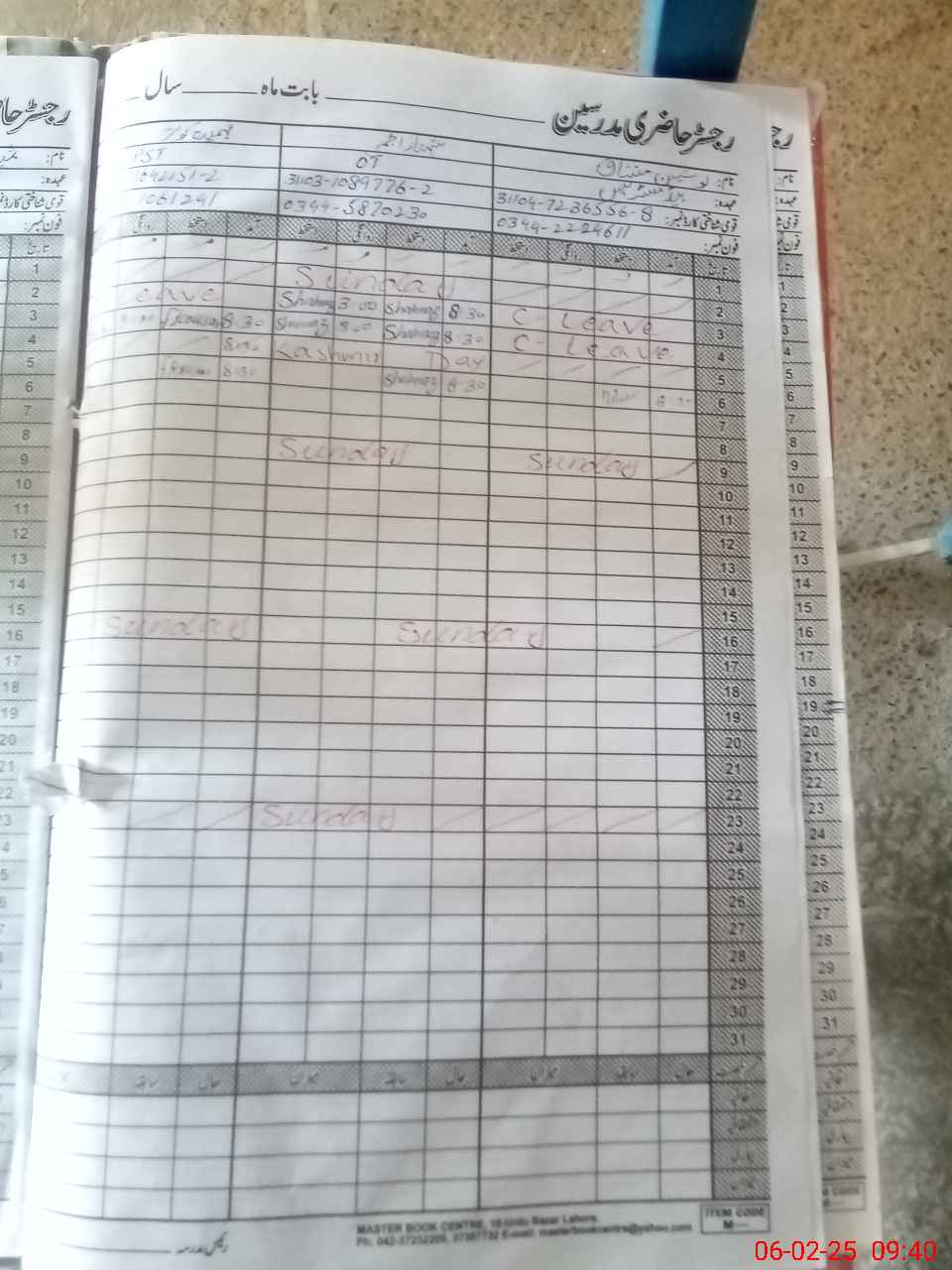 | CNIC | Full Name | Designation | R/C | Absence During Last Calender Month |