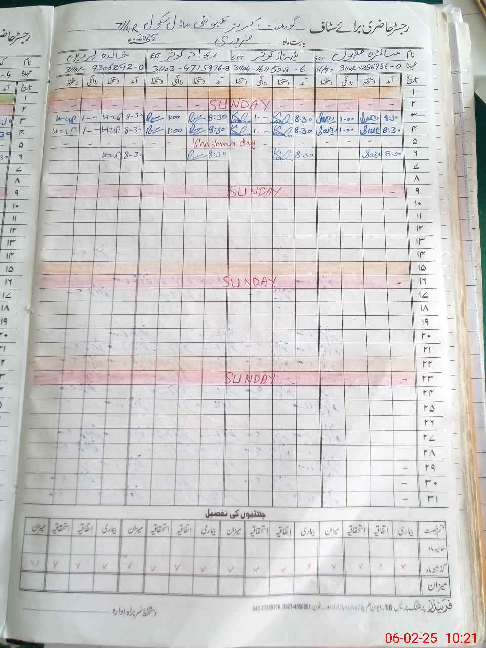 | CNIC | Full Name | Designation | R/C | Absence During Last Calender Month |