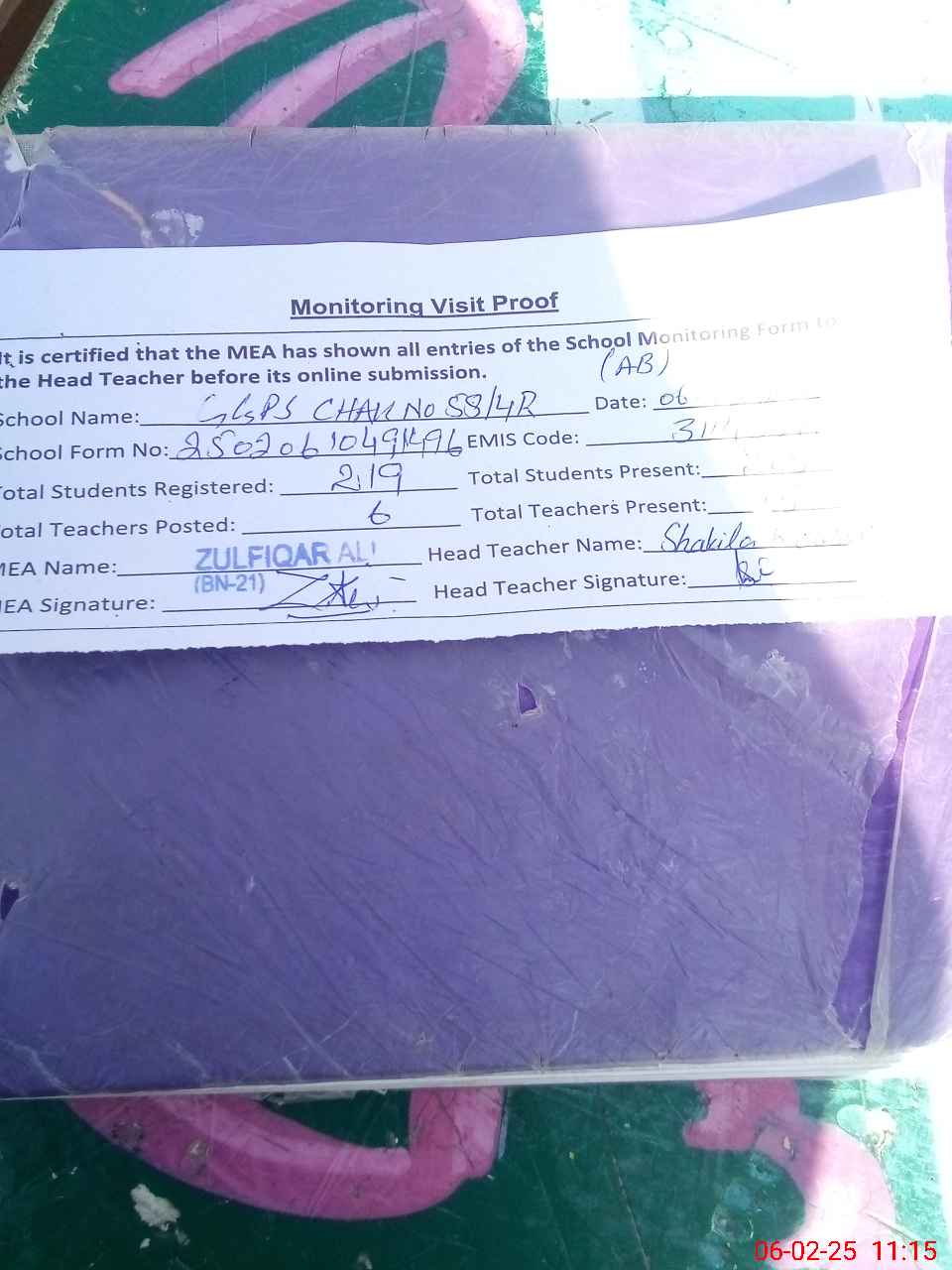 | EMIS Code: 31140336 | Name of School: GGPS CHAK NO. 58/4-R AB | |||