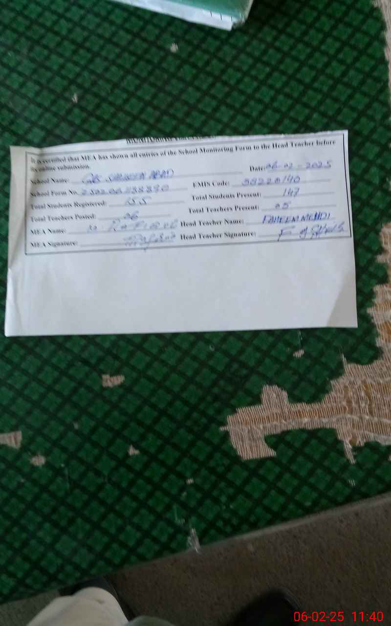 | Certified that this School was Inspected by the Undersigned MEA/DMO Today and the Information Stated Above is as Per Record. | |||||