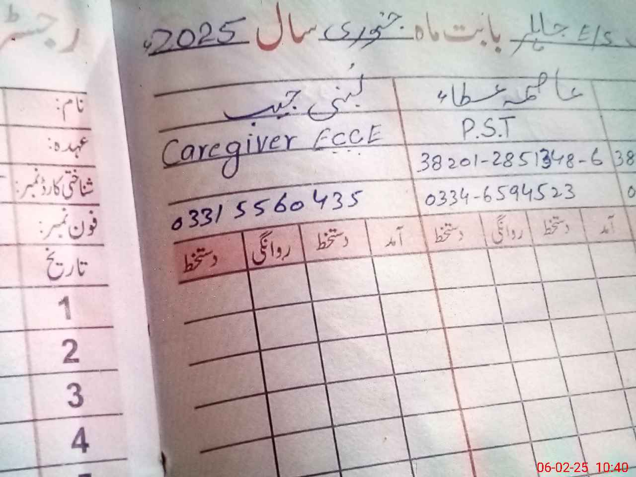 | CNIC | Full Name | Designation | R/C | Absence During Last Calender Month |