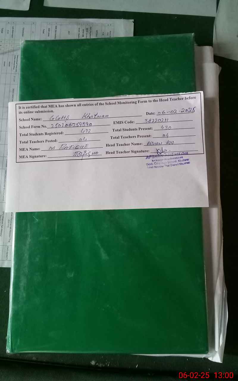 | EMIS Code: 38220211 | Name of School: GGHS KHATWAN | |||
