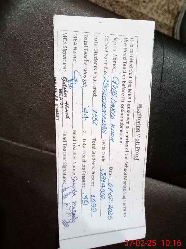 | Certified that this School was Inspected by the Undersigned MEA/DMO Today and the Information Stated Above is as Per Record. | |||||