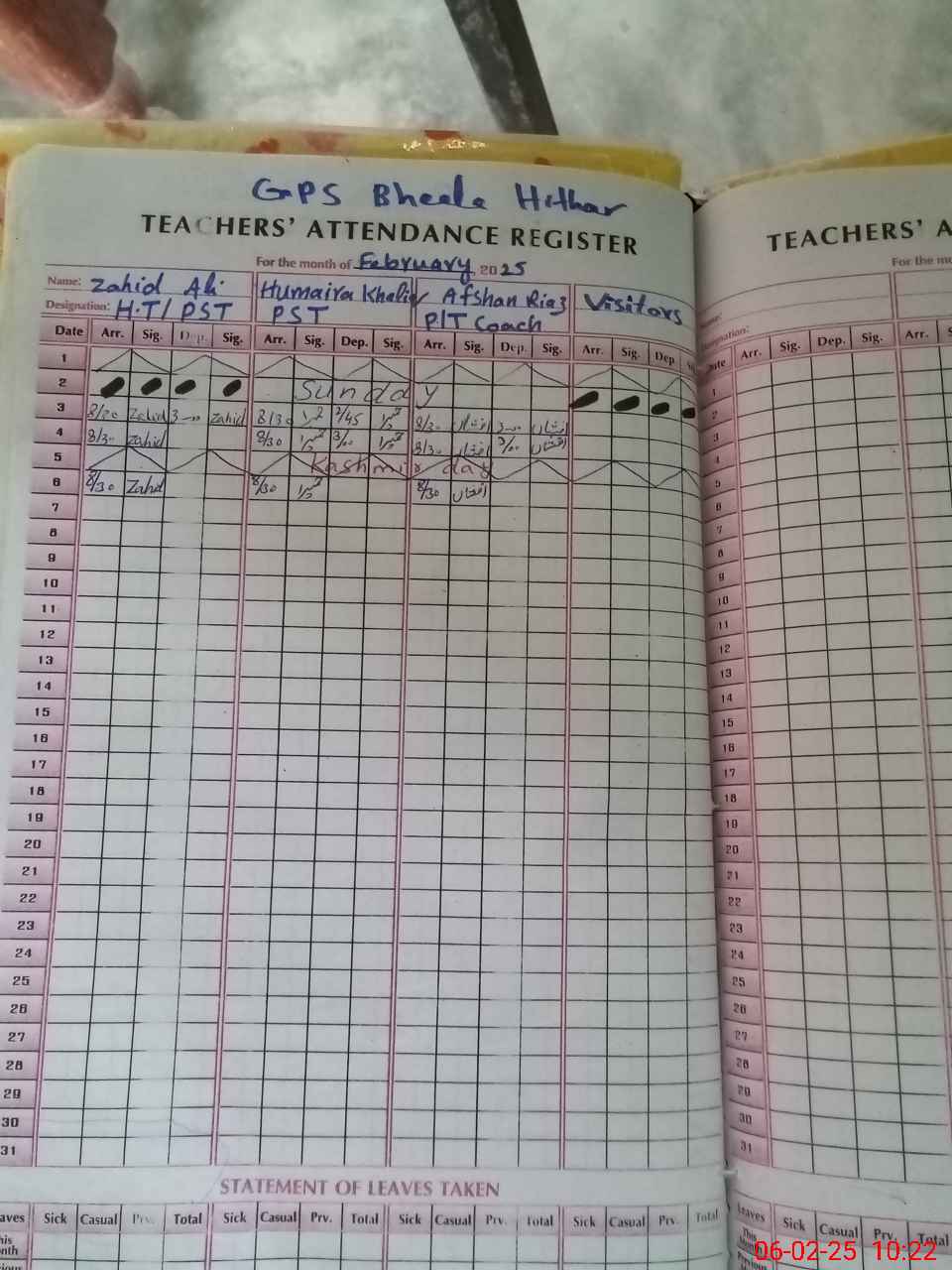 | Name: ZA**** AL**** Designation: (School Headmaster's/Headmistress's) PST Phone/Cell Number: 03**** |
