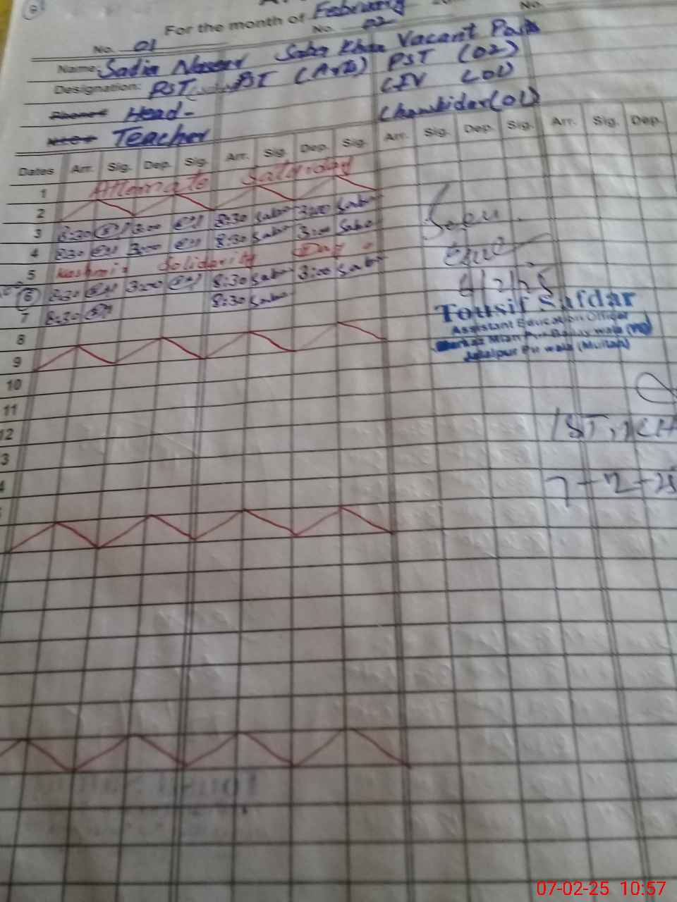 | Name: Sa**** Na**** Designation: (School Headmaster's/Headmistress's) Pst(sc.math) Phone/Cell Number: 03**** |