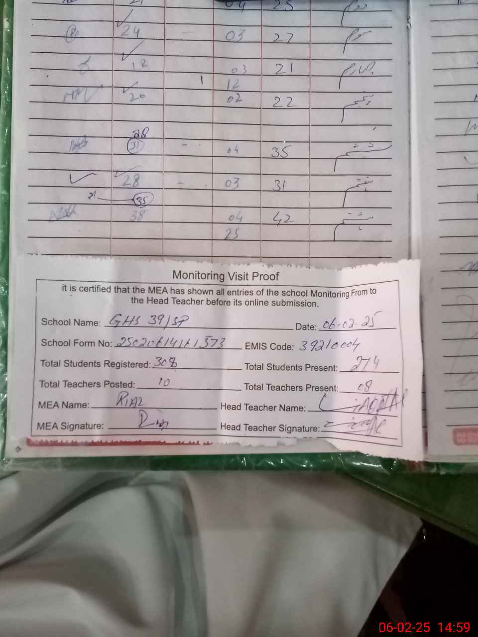 | EMIS Code: 39210004 | Name of School: GHS 39/S.P | |||
