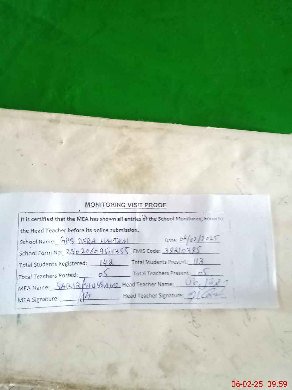 | EMIS Code: 38210385 | Name of School: GPS DERA HAITAM KHAN | |||