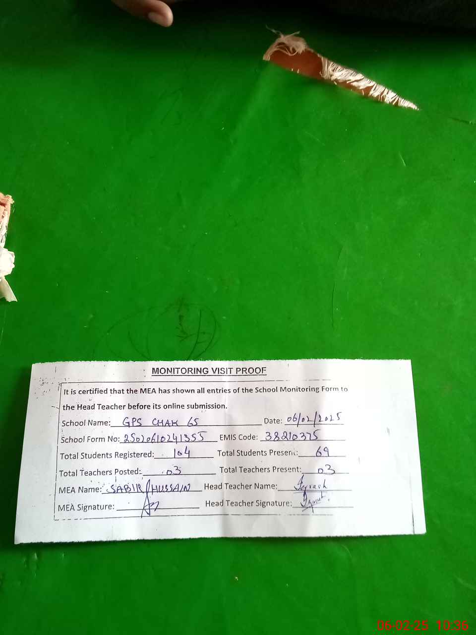 | EMIS Code: 38210375 | Name of School: GPS CHAK 65 MB | |||