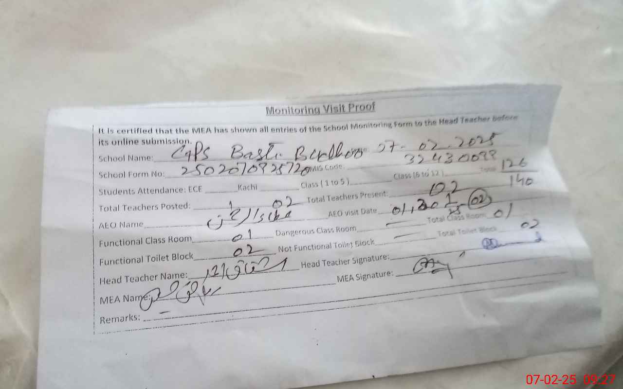 | EMIS Code: 32430099 | Name of School: GPS BASTI BUDHOO | |||