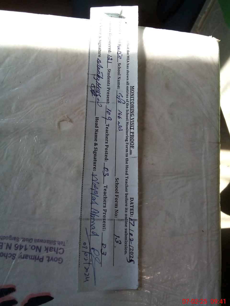 | Attendance Register | Head Teacher | MEA with School | Visit Proof |