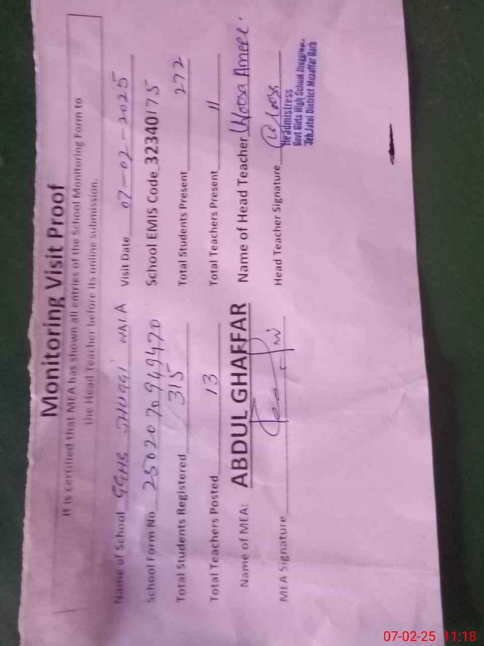 | EMIS Code: 32340175 | Name of School: GGHS JHUGGI WALA | |||