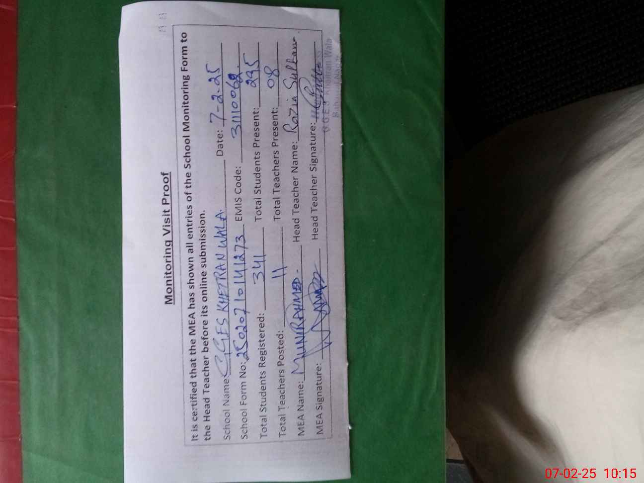 | Certified that this School was Inspected by the Undersigned MEA/DMO Today and the Information Stated Above is as Per Record. | |||||