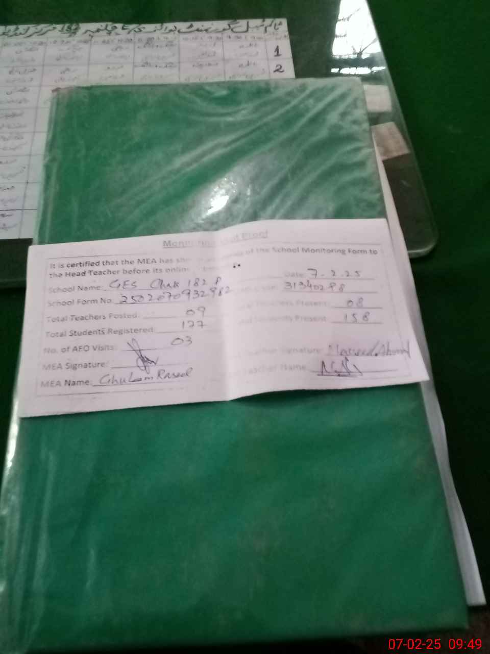 | Attendance Register | Head Teacher | MEA with School | Visit Proof |