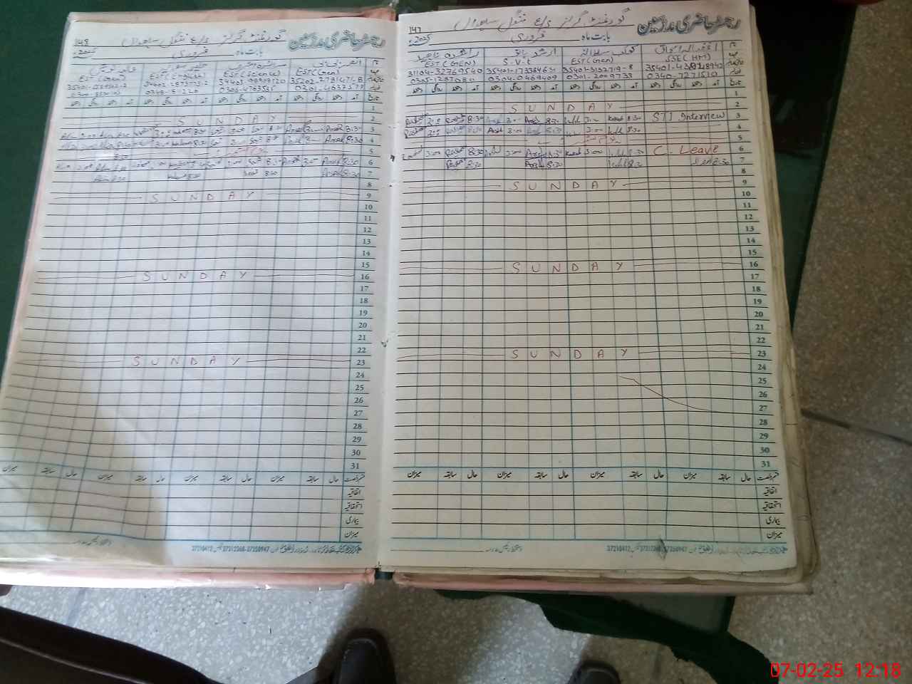 | CNIC | Full Name | Designation | R/C | Absence During Last Calender Month |